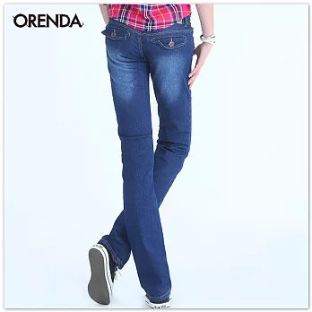 ORENDA 修身美型牛仔褲L深藍抓破後處理呈現破壞美,刷白後加工視覺美瘦腿;修身直筒褲穿著自在有個性。